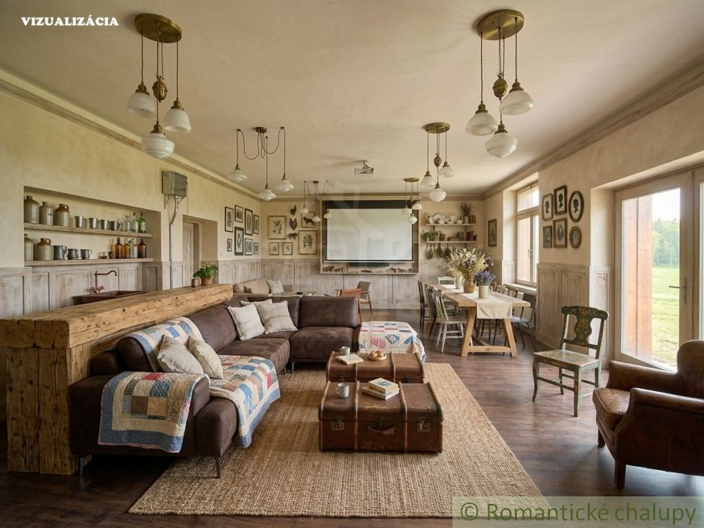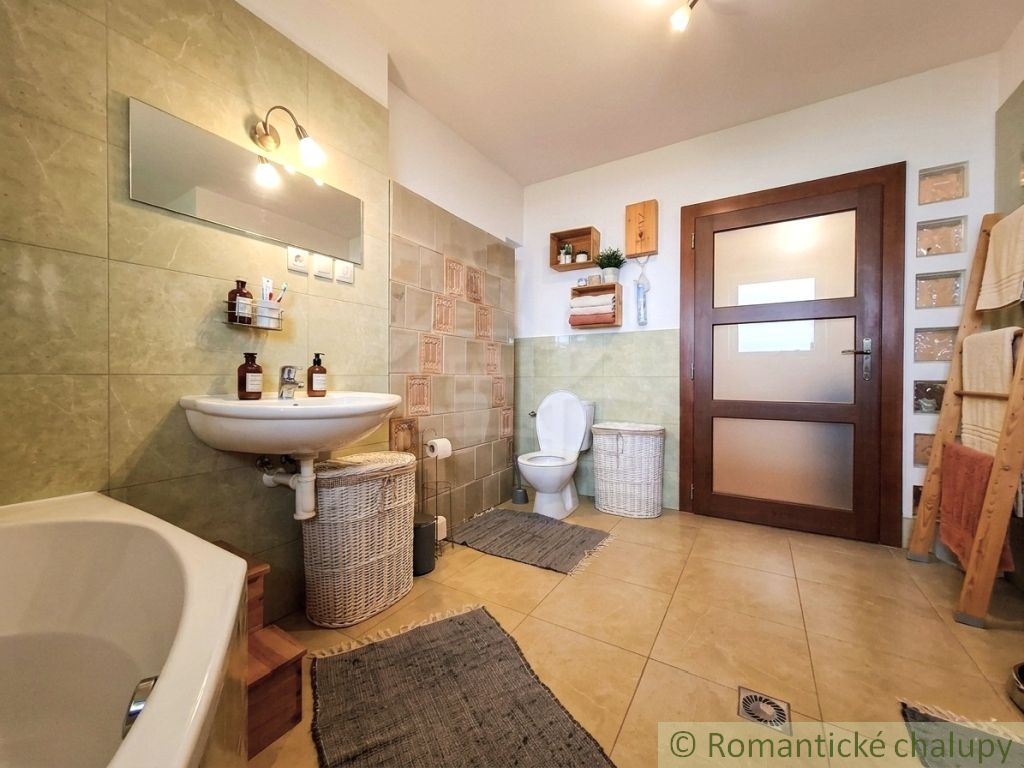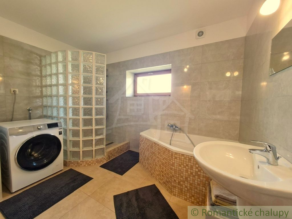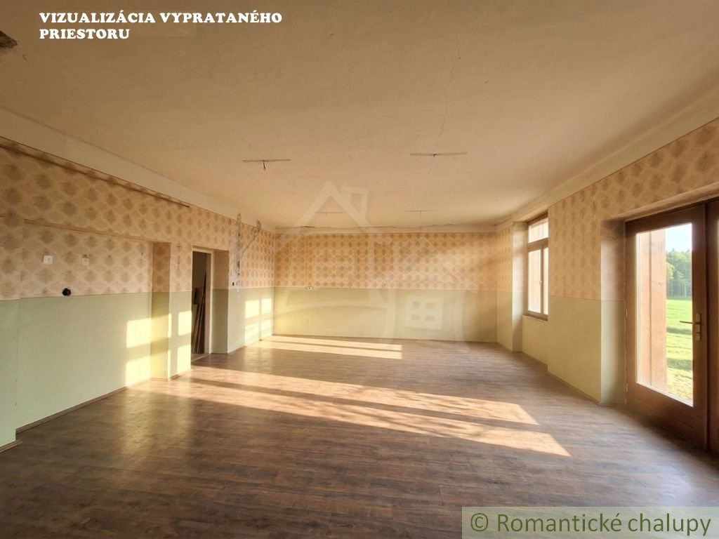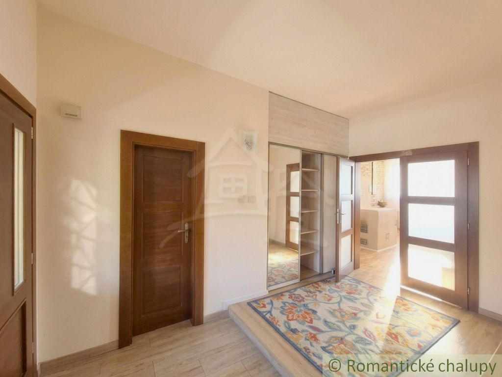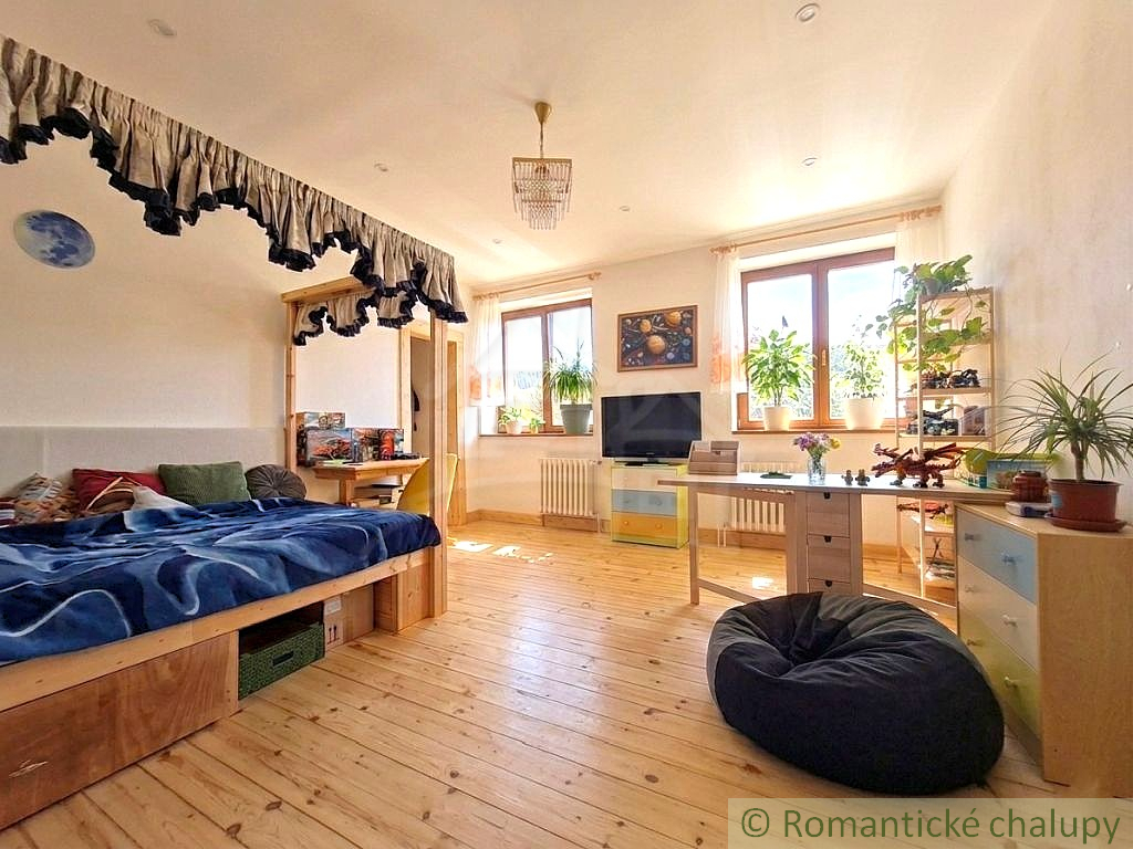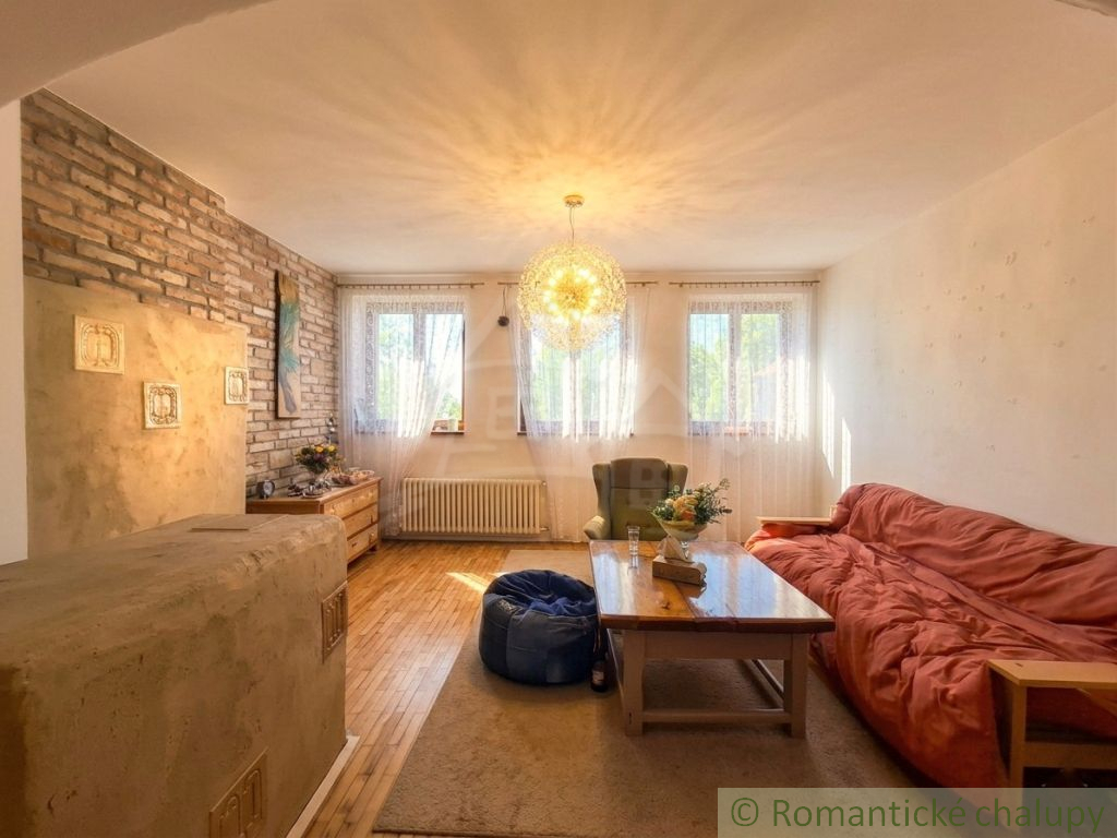Srdcom domu je otvorená obývačka s tradičnou pecou, ktorá dotvára útulnú atmosféru. Dispozíciu dopĺňa spálňa, detská izba a kúpeľňa s druhým WC. Bonusom je zadná časť domu s obrovskou miestnosťou a dvoma menšími izbami, ktoré si môžete dokončiť podľa vlastných predstáv ako hosťovské izby či ateliér.