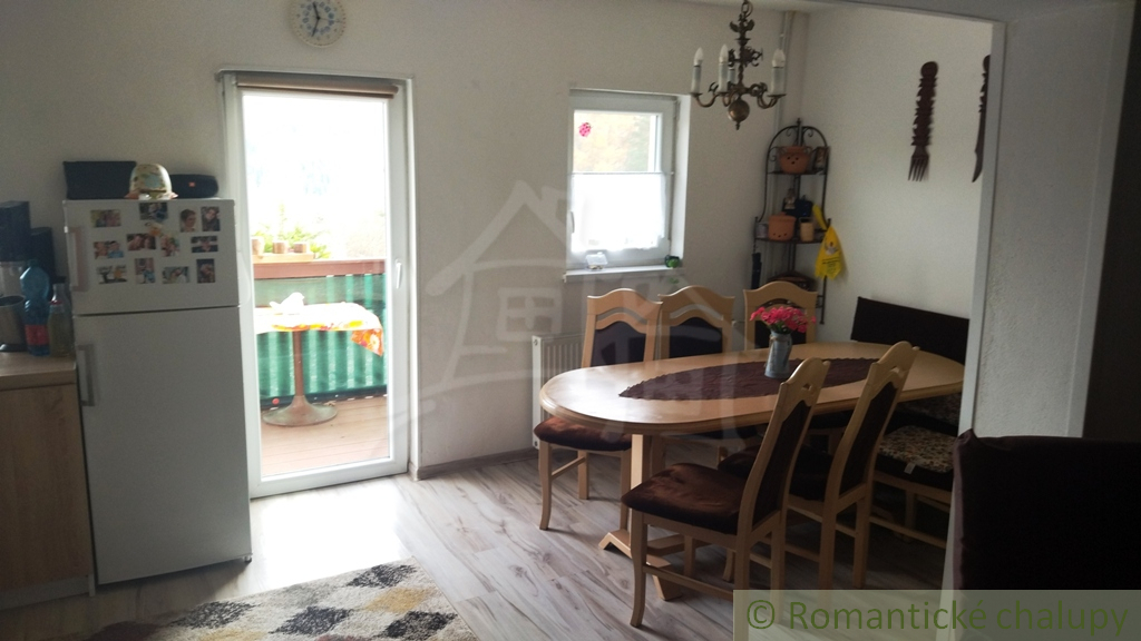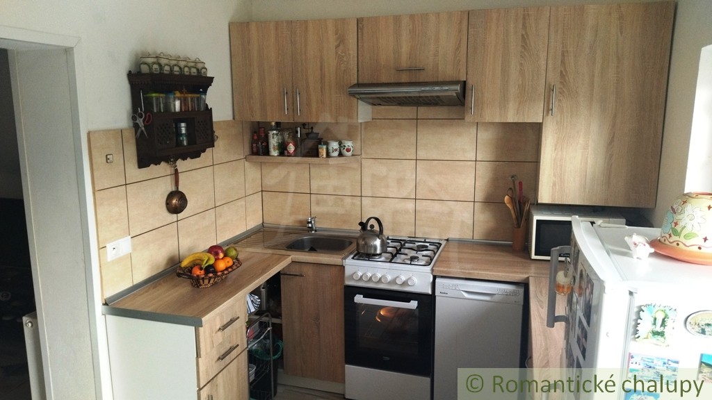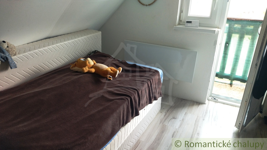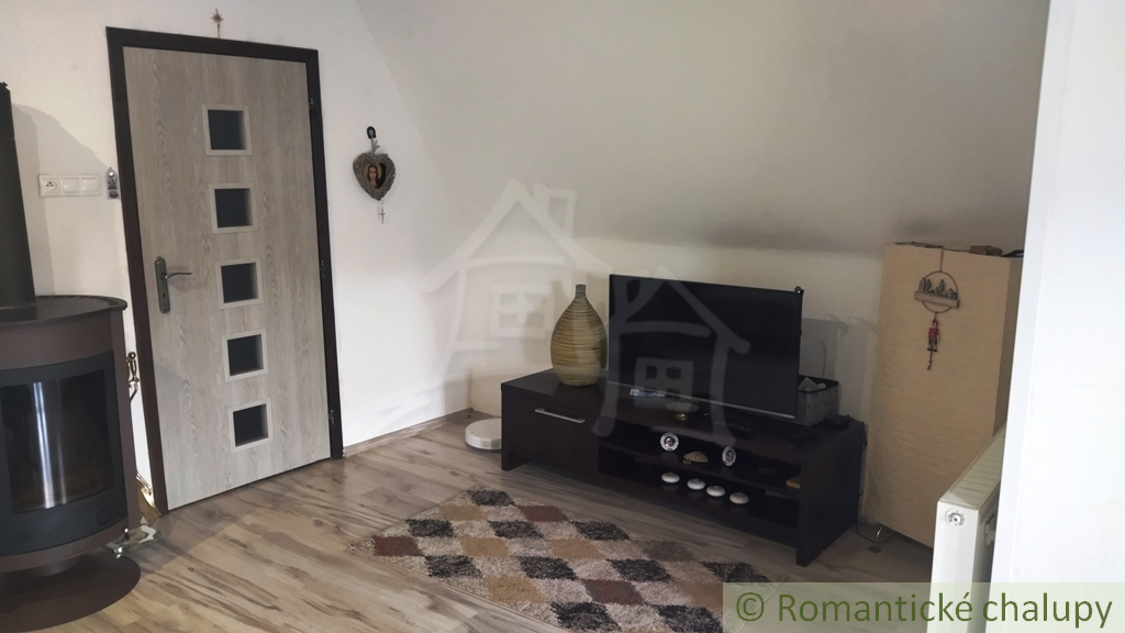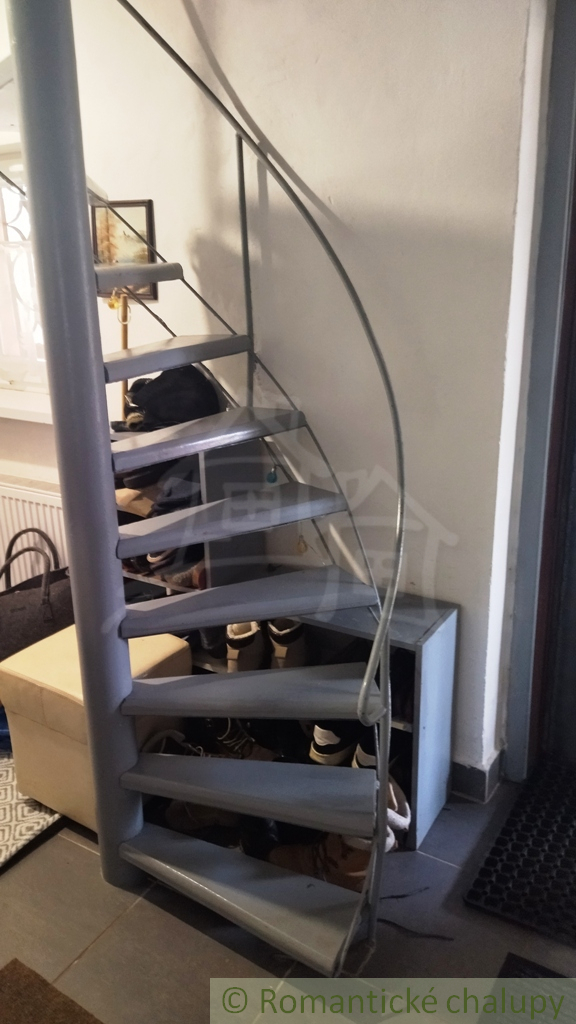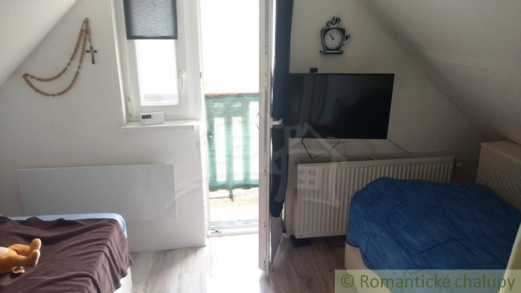 Do podkrovia vedú točité schodíky z predsiene (schválené fitnes trénerom). Tam nájdeme dve malé, priechodné spálne – ideálne, ak sú pubertiaci hluční. V hlavnej dennej časti je predsieň, samostatné WC, obývačka spojená s kuchyňou (aby bolo blízko ku chladničke) a balkón s výhľadom zadarmo.