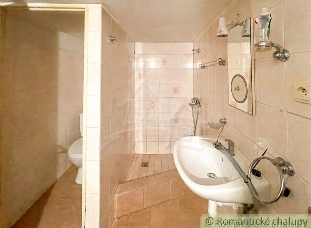 Je tu spoločenská miestnosť, kuchyňa, kúpeľna s wc, dve podkrovné spálne.
