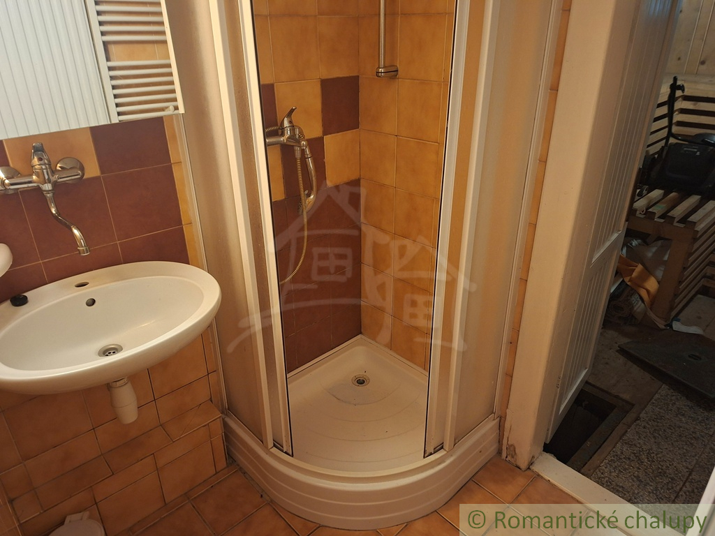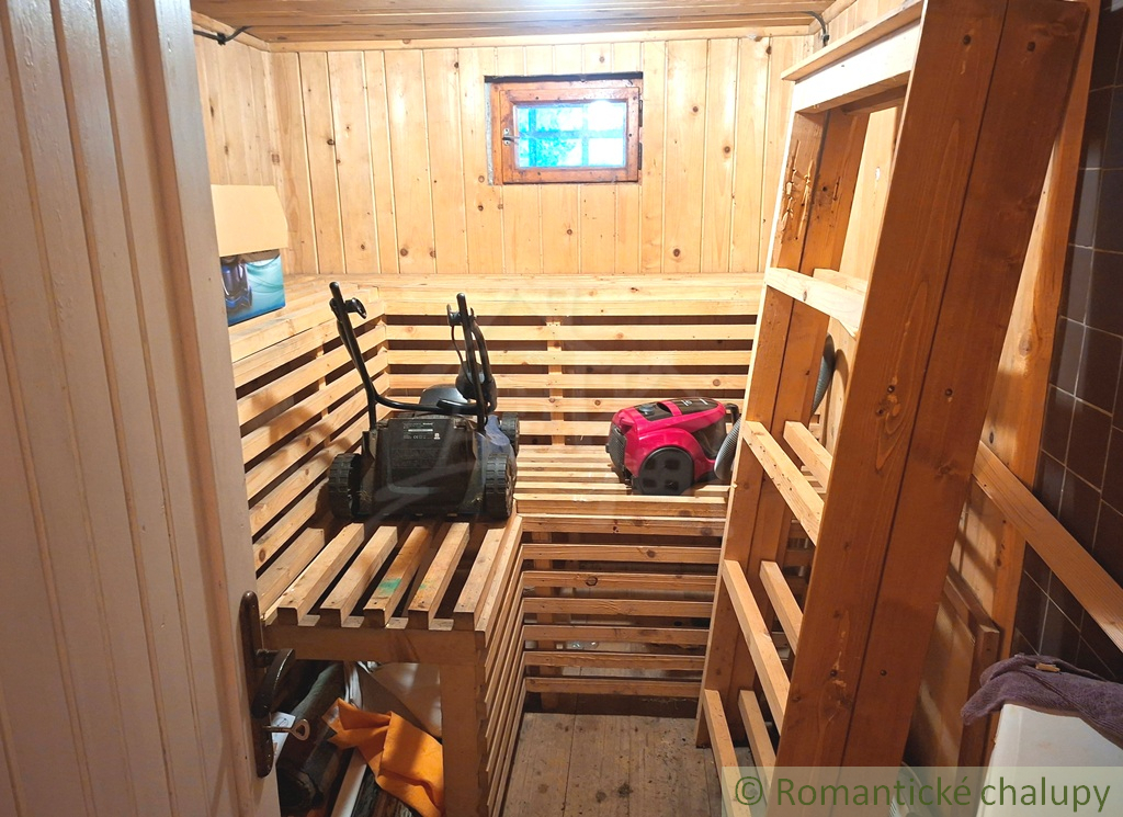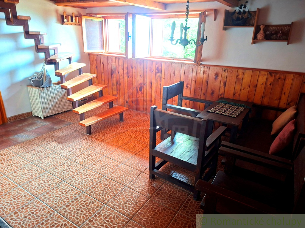 Prízemie – vstupná chodba, spoločenská miestnosť s krbom, kúpeľňa so sprchovým kútom a WC. Bonusom je priestor pôvodne určený na saunu, ktorý momentálne slúži ako praktický sklad (možnosť opätovného využitia na relaxačnú zónu).