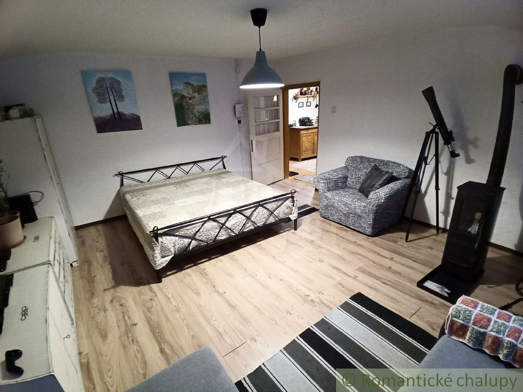 • Prízemie: chodba, kuchyňa s tradičnou murovanou pecou, útulná obývacia izba s pieckou a spálňa na pokojné noci a kúpeľňa s WC