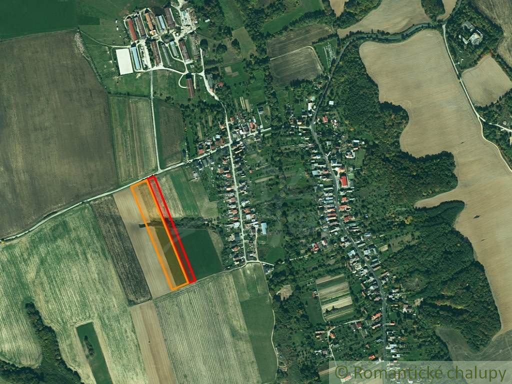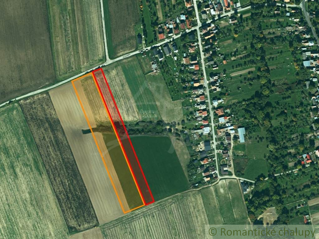 Pozemky ako investícia, ktorých časti sú schválené v územnom pláne obce, ako plochy na výstavbu rodinných domov sa nachádzajú pri západnej strane tejto malebnej obce. Jedná sa o dve parcely registra C , ktoré sú vedené ako orná pôda. Pozemok vyznačený červenou farbou (8124m2), sa predáva ako celok. Druhý pozemok vyznačený oranžovo(20310m2), sa predáva ako podiel v 1/2, čiže podiel o celkovej výmere 10155m2. Oba pozemky, t.j. celý pozemok aj podiel z druhého pozemku sa predávajú v rámci jedného predaja spolu. Cena za m2 je 12€.