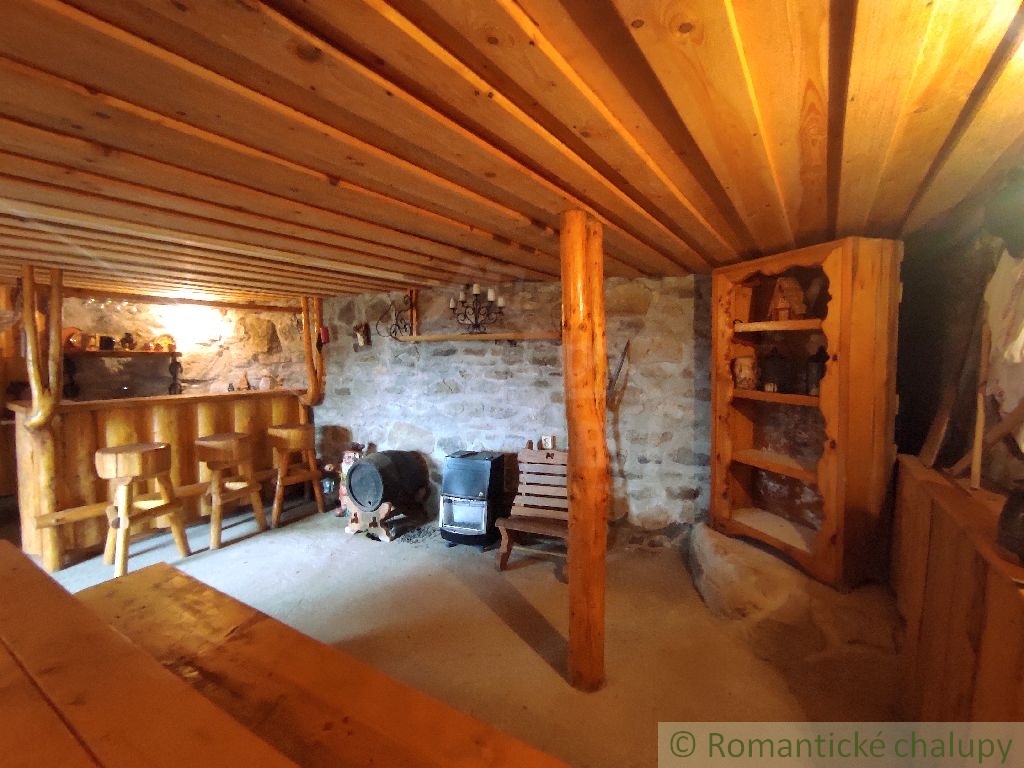 EXKLUZÍVNE - Ponúkame na predaj zaujímavú nehnuteľnosť v krásnom prostredí lazov s panoramatickým výhľadom priamo z gánku. K nehnuteľnosti vedie spevnená komunikácia. Leží na pozemku o celkovej výmere 2117 m2. Jedná sa o drevenú stavbu s kamennými základmi, pristavenú k pôvodnému kamennému domčeku. Ten je tvorený vstupnou chodbou a 2 miestnosťami. Chalupa prešla kompletnou rekonštrukciou. Má zavedenú elektrinu, vodu z vlastných (2) studní, odpady sú vyvedené trativodom . Chalupa je podpivničená. Vykurovanie je zabezpečené kozubom s prieduchmi do miestnosti v kombinácií s elektrickými radiátormi. V suteréne je krásna vínna pivnica s masívnym dreveným sedením a barovým pultom. Je tu aj pripravený priestor na saunu. Prízemie je tvorené chodbou, priestrannou spoločenskou miestnosťou s kozubom, biliardovým stolom, 2 kúpeľnami a 2 spálňami. Na poschodí sa nachádzajú tri izby, WC a obývačkový kút. V každej obytnej izbe sú kvalitné postele z masívneho dreva, takisto podlahy, stropy, schodište aj galéria majú krásne detailné prepracovanie. Priestranný dvor disponuje ihriskom, štýlovým prestrešeným murovaným altánkom, s ohniskom a posedením, ďalej je na pozemku dreváreň so skladom a samostatne stojaca garáž. Pozemok okolo chalupy je oplotený. Z pozemku sú nádherné výhľady do okolitej prírody. Veľkým benefitom je súkromie a pokoj . Toto miesto si zamilujete. Chalupa sa predáva aj so zariadením, ponúka nadštandardný komfort a vďaka svojej polohe a veľkorysému priestoru môže byť využitá aj na komerčné účely. Video z vtáčej perspektívy : https://youtu.be/HqVS_KEerbU