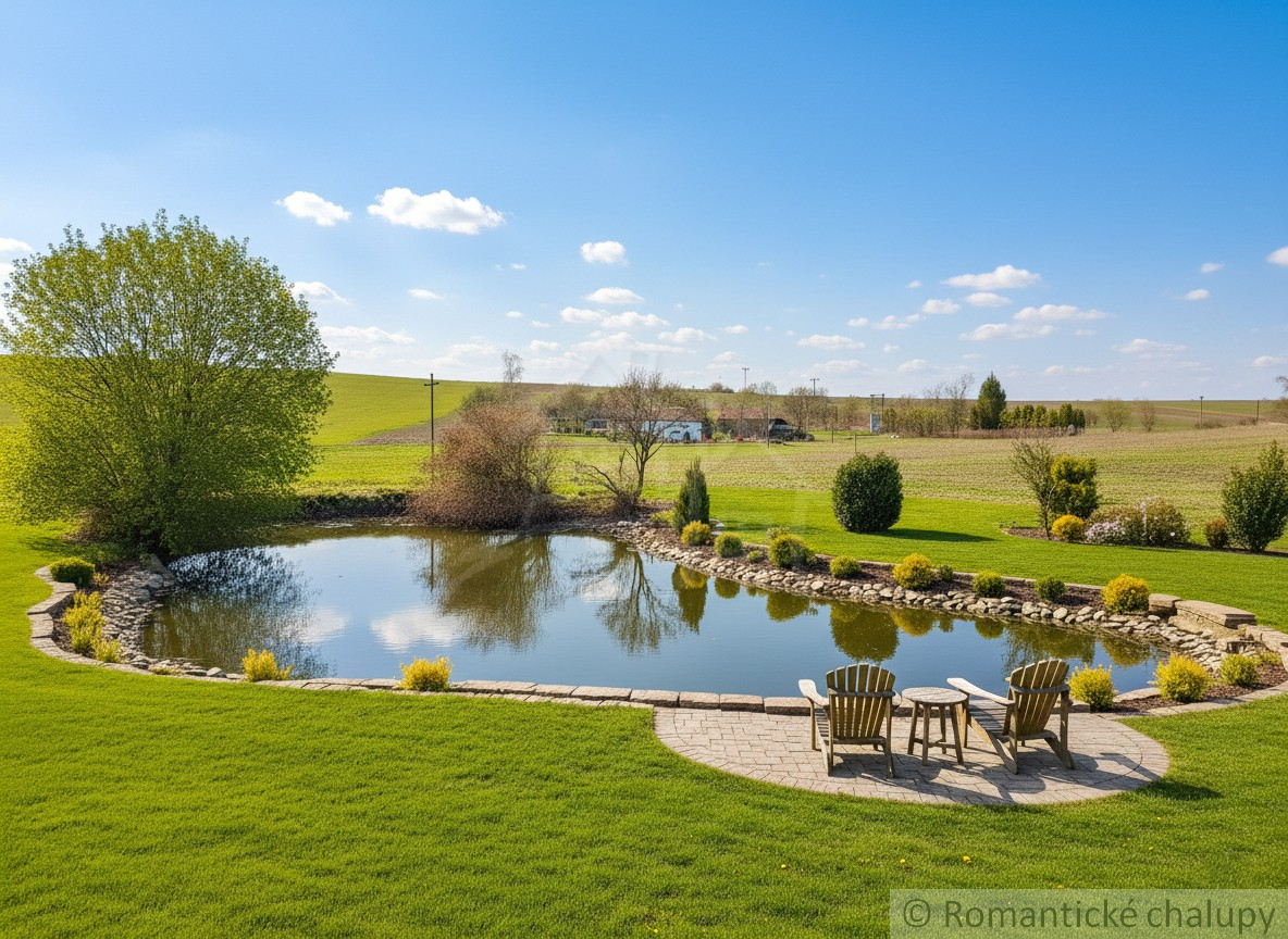 Rozľahlý pozemok (4,3 ha) v jednom celku – zahŕňa zastavanú plochu, vinicu nad domom, pasienky s prírodným jazierkom a lesný pozemok.