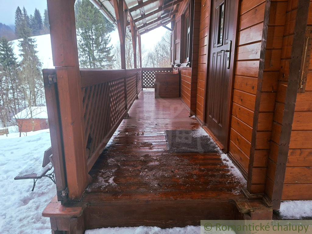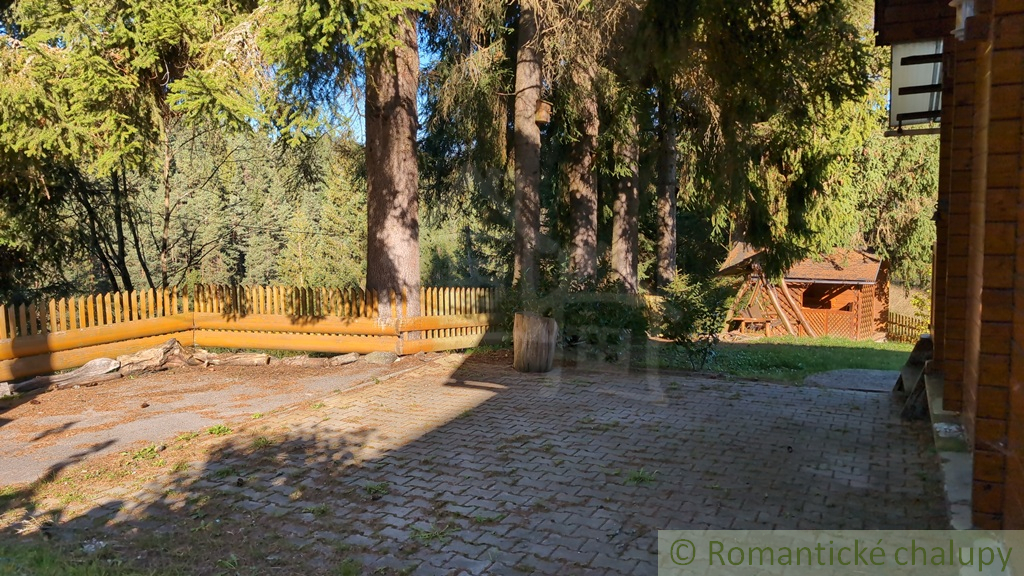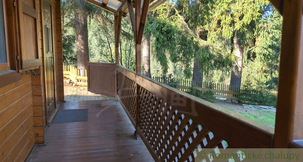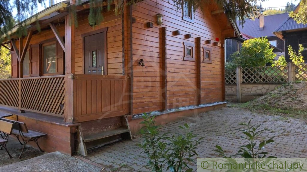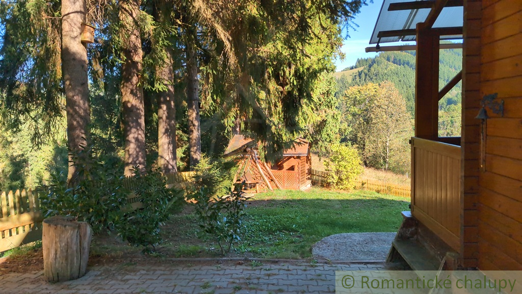 Romantická drevenica s garážou, upraveným pozemkom a terasou na posedenie pri rannej káve