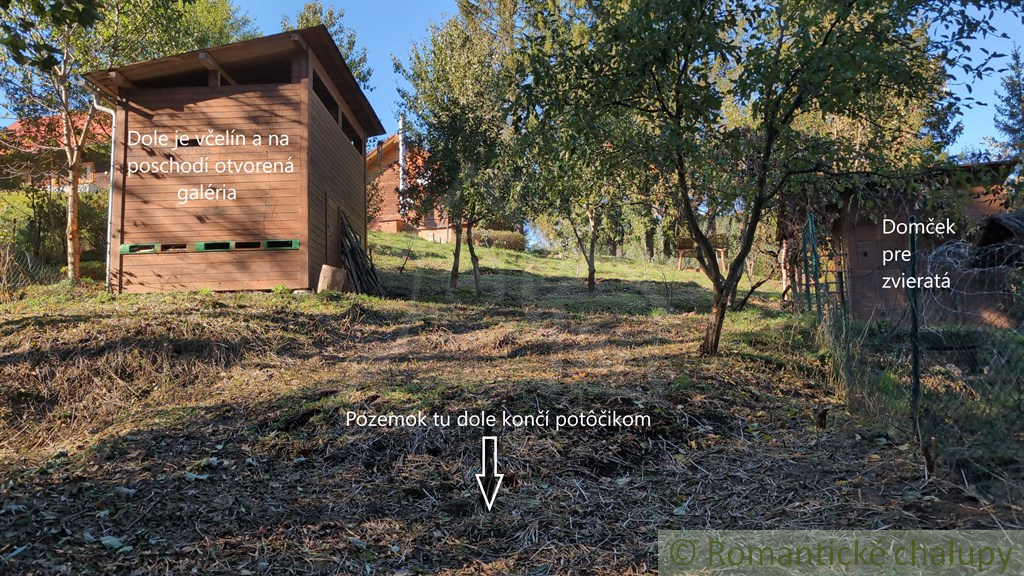 Popis nehnuteľnosti: na vrchnej časti pozemku je fínsky zrub. Zastavaná čas stavby je 7x8m. Z toho 1x8m má terasa. Stavba nie je veľká, ale je účelne riešená. Vstupná chodba, kúpeľňa s WC a sprchovým kútom, priestranná obývačka s vysokým stropom a kuchynka z ktorej je schodisko do podkrovnej spálne, kde sú 3 miesta na spanie. Ďalšie dva miesta na spanie sú na rozkladacom gauči. Chata je vykurovaná elektrickými radiátormi (pohodlie), alebo krbovou pecou v obývačke (atmosféra). Napojená je na elektrinu, čističku a vodou zo spoločného rezervoáru. Na spoločných rezervoároch fungujú všetky osady v tejto lokalite (Zázrivá, Terchová..). Na pozemku sa ďalej nachádza altánok s masívnym nábytkom, hojdačka z masívu, krmelec, domček pre zvieratá a veľký včelín. Vo včelíne je priestor aj pre sliepky napr. a na poschodí je otvorená vyhliadka/galéria. Je to zaujímavá stavba, ktorá môže mať rôzne využitie. Celá nehnuteľnosť je oplotená. Dokonca aj časť pre zvieratá je zvlášť oplotená.