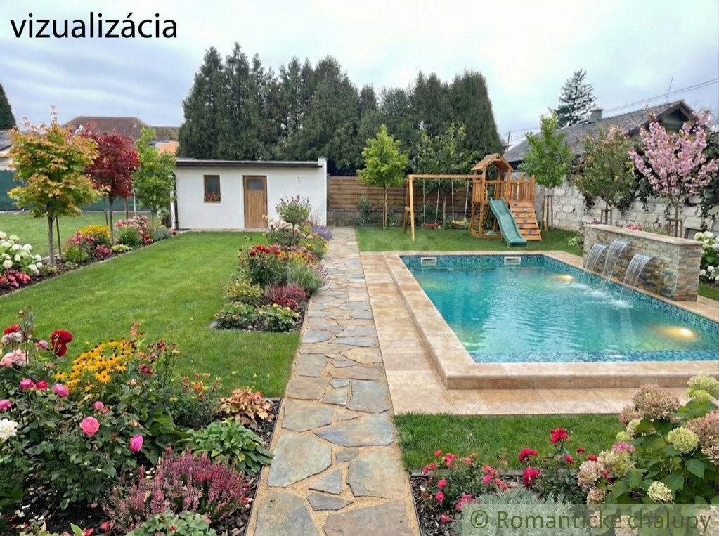 Na rovinatom oplotenom pozemku o výmere 732 m2 sa okrem rodinného domu nachádzajú dve letné kuchyne so špajzou, vlastná studňa a záhrada s ovocnými stromami (jablone,