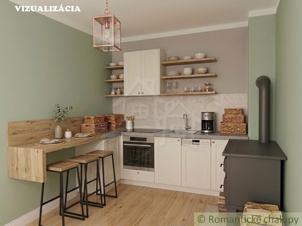 Dom je čiastočne podpivničený. Na prízemí je letná kuchynka so sporákom na drevo a kúpeľňa bez WC.