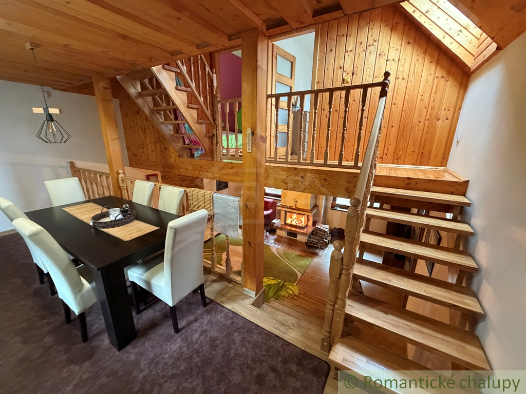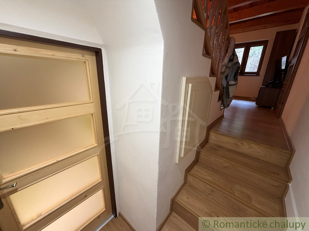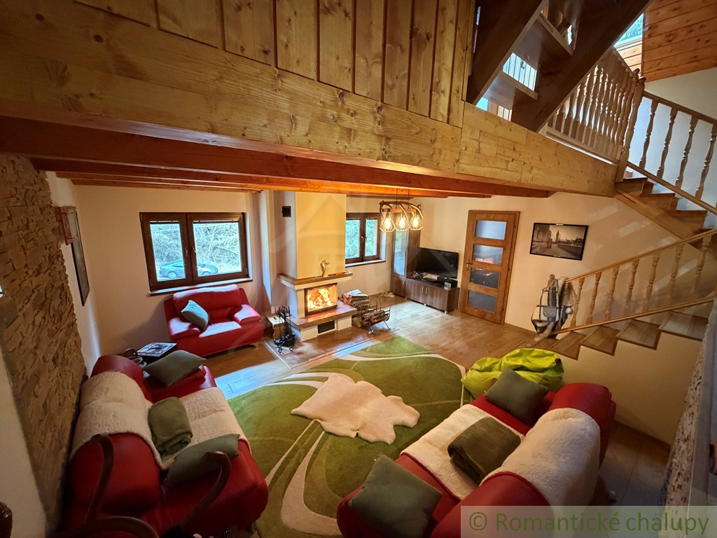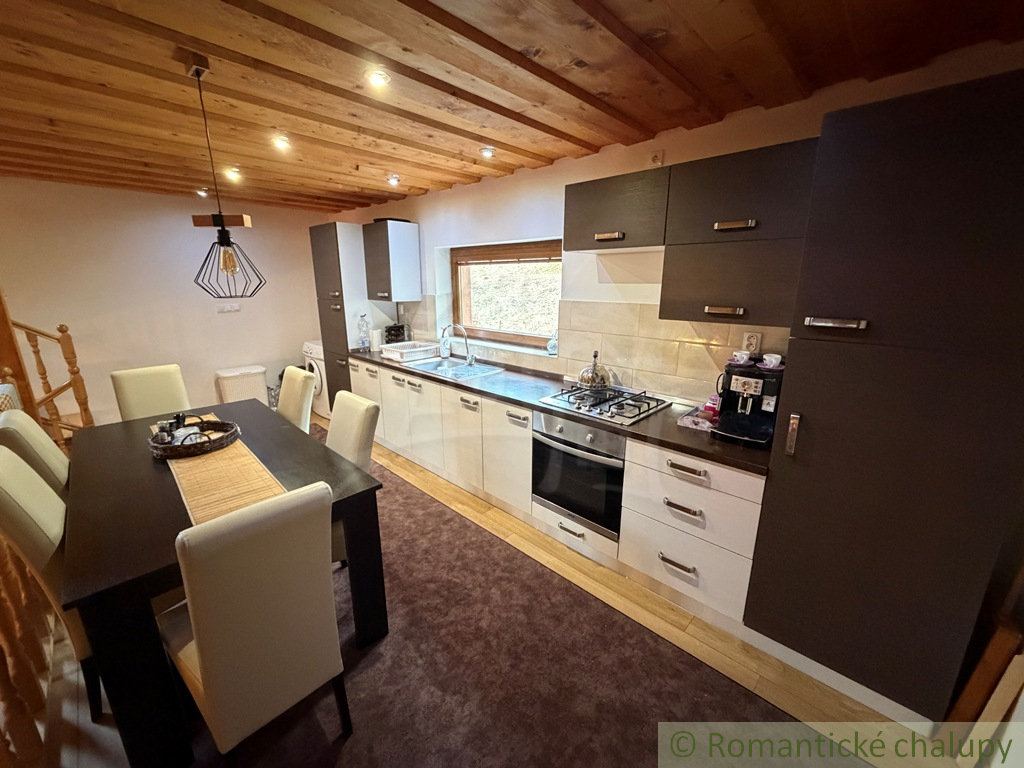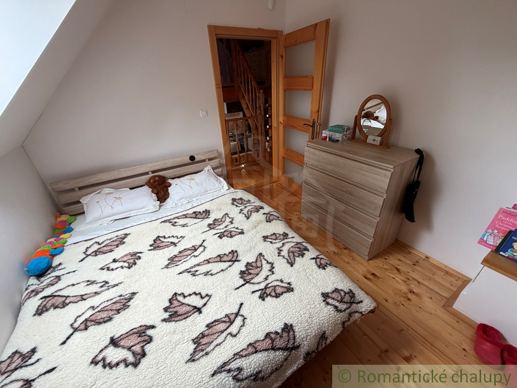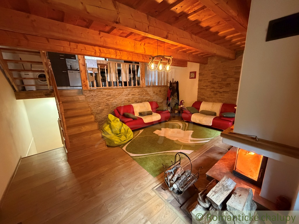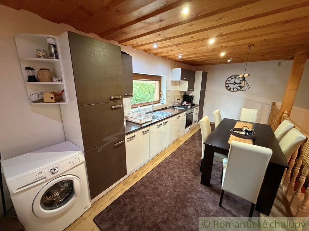 Na predaj pekná a prakticky riešená novostavba chalupy. Do chalupy cez predsieň prejdeme do priestrannej obývačky s krbom. Súčasťou obývačky je kuchyňa s jedálenským stolom. Pod kuchyňou je kúpeľňa a sauna. Z kuchyne sa ide po schodoch do podkrovia, kde sú tri izby.
