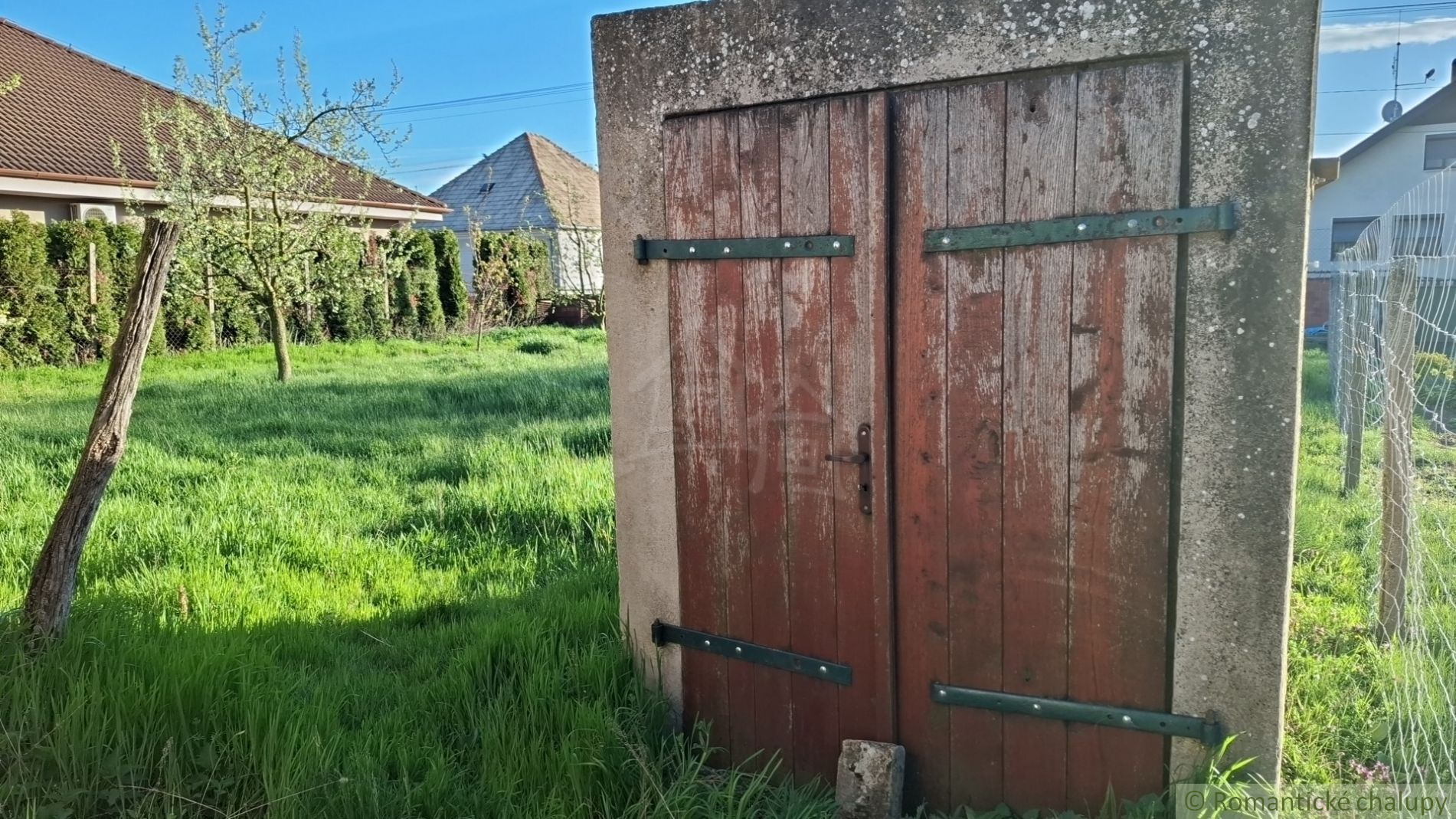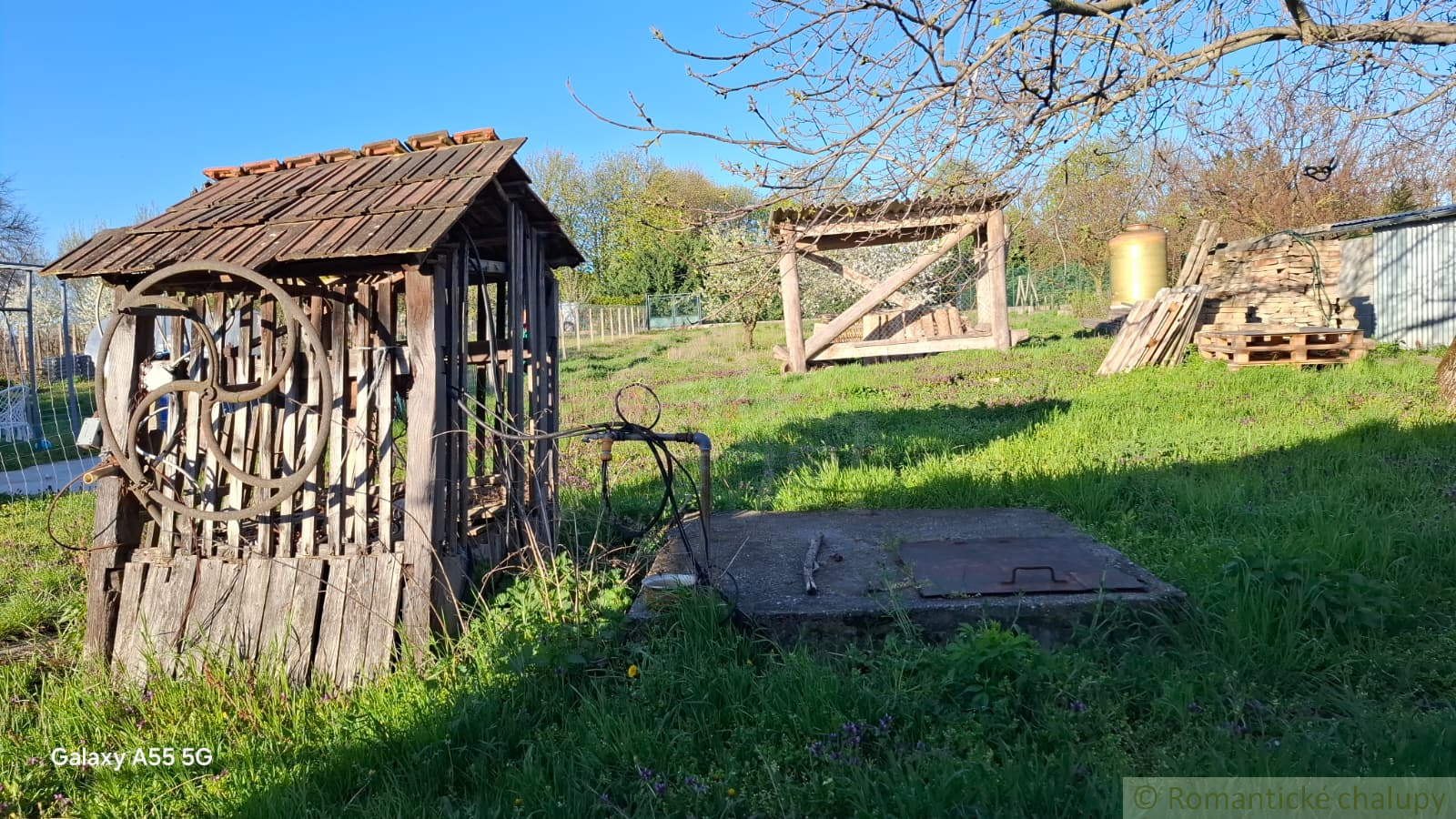 Na pozemku sa nachádza pôvodná stavba v zlom technickom stave, ktorá však nie je zapísaná na liste vlastníctva. Z praktického hľadiska to znamená, že v prípade jej odstránenia nie je potrebné vybavovať búracie povolenie. Budova je situovaná približne v strede dĺžky a prechádza celou šírkou parcely, čo prirodzene rozdeľuje priestor. Novú výstavbu je možné orientovať na ktorúkoľvek stranu pozemku podľa preferencií majiteľa. Súčasťou záhrady je aj niekoľko ovocných stromov a funkčná klenbová vínna pivnica.