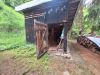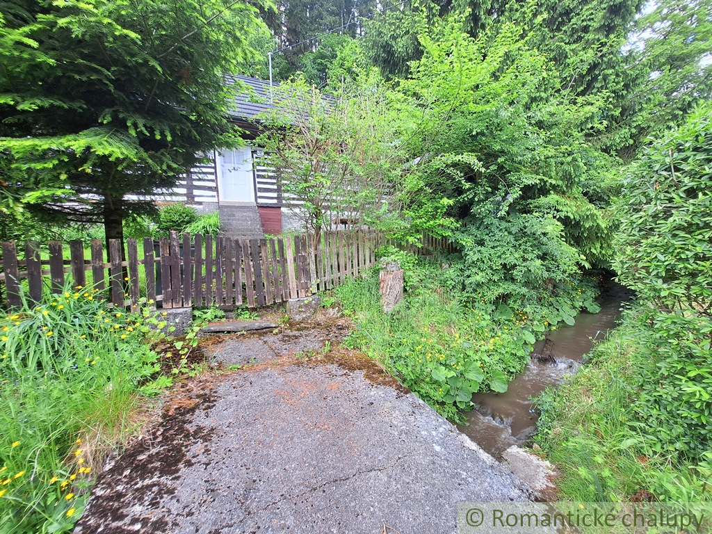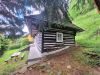 Tradičná drevenica na Liptove s potôčikom pred pozemkom.
