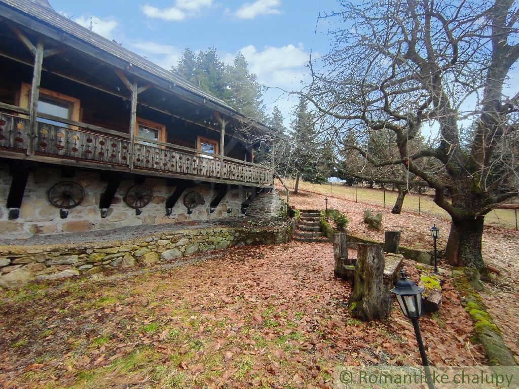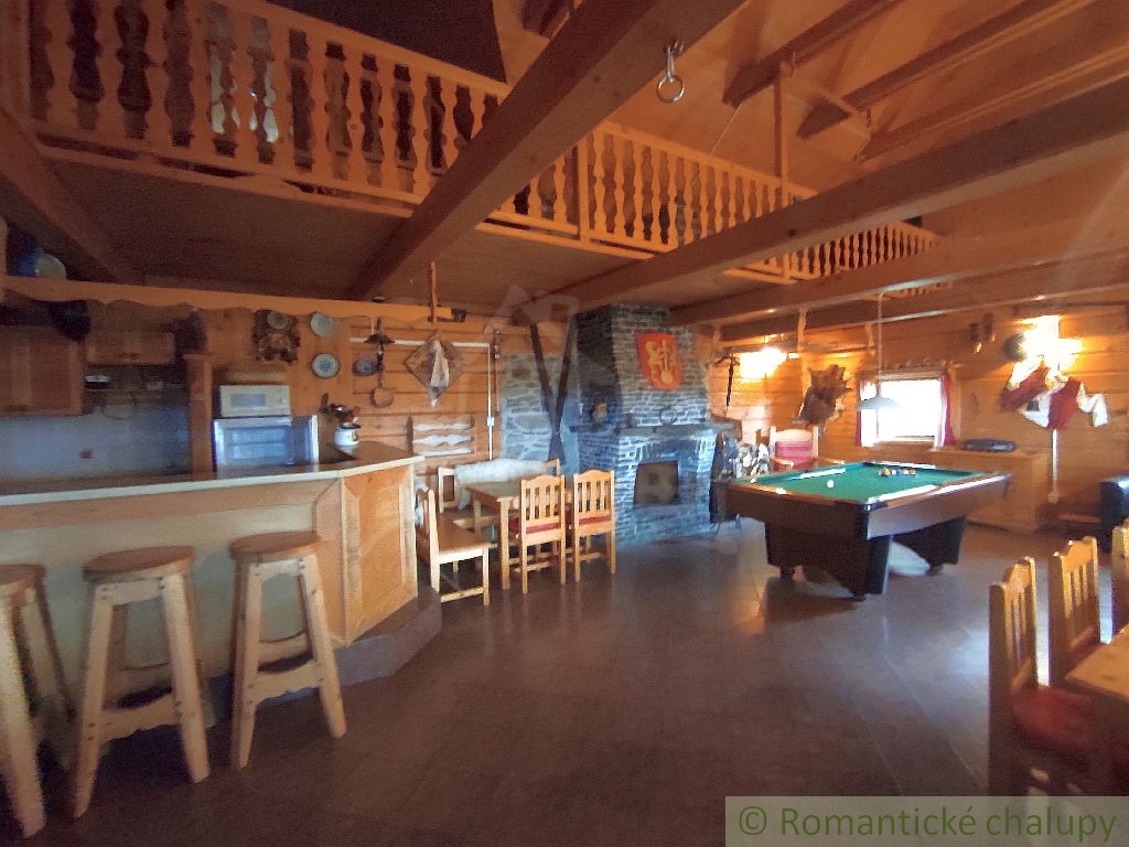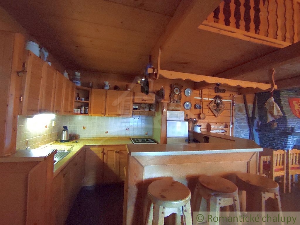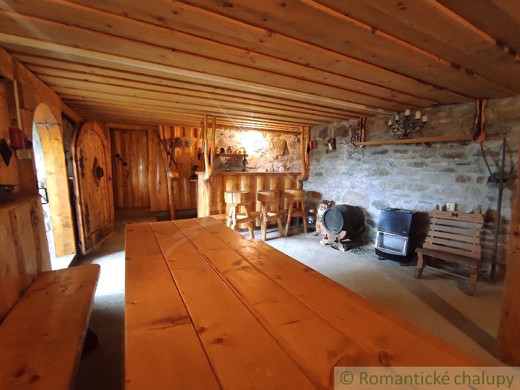 Ponúkame na predaj zaujímavú nehnuteľnosť v krásnom prostredí lazov s panoramatickým výhľadom priamo z gánku. K nehnuteľnosti vedie spevnená komunikácia. Leží na pozemku o celkovej výmere 2117 m2. Jedná sa o drevenú stavbu s kamennými základmi, pristavenú k pôvodnému kamennému domčeku. Ten je tvorený vstupnou chodbou a 2 miestnosťami. Chalupa prešla kompletnou rekonštrukciou. Má zavedenú elektrinu, vodu z vlastných (2) studní, odpady sú vyvedené trativodom . Chalupa je podpivničená. Vykurovanie je zabezpečené kozubom s prieduchmi do miestnosti v kombinácií s elektrickými radiátormi. V suteréne je krásna vínna pivnica s masívnym dreveným sedením a barovým pultom. Je tu aj pripravený priestor na saunu. Prízemie je tvorené chodbou, priestrannou spoločenskou miestnosťou s kozubom, biliardovým stolom. Na poschodí sa nachádzajú tri izby, WC a obývačkový kút. V každej obytnej izbe sú kvalitné postele z masívneho dreva, takisto podlahy, stropy, schodište aj galéria majú krásne detailné prepracovanie. Priestranný dvor disponuje ihriskom, štýlovým prestrešeným murovaným altánkom, s ohniskom a posedením, ďalej je na pozemku dreváreň so skladom a samostatne stojaca garáž. Pozemok okolo chalupy je oplotený. Z pozemku sú nádherné výhľady do okolitej prírody. Veľkým benefitom je súkromie a pokoj . Toto miesto si zamilujete. Chalupa sa predáva aj so zariadením, ponúka nadštandardný komfort a vďaka svojej polohe a veľkorysému priestoru môže byť využitá aj na komerčné účely. Video z vtáčej perspektívy : https://youtu.be/HqVS_KEerbU