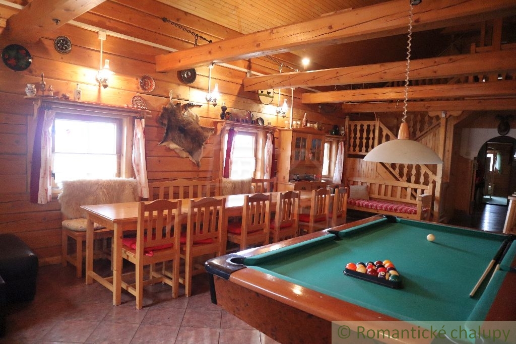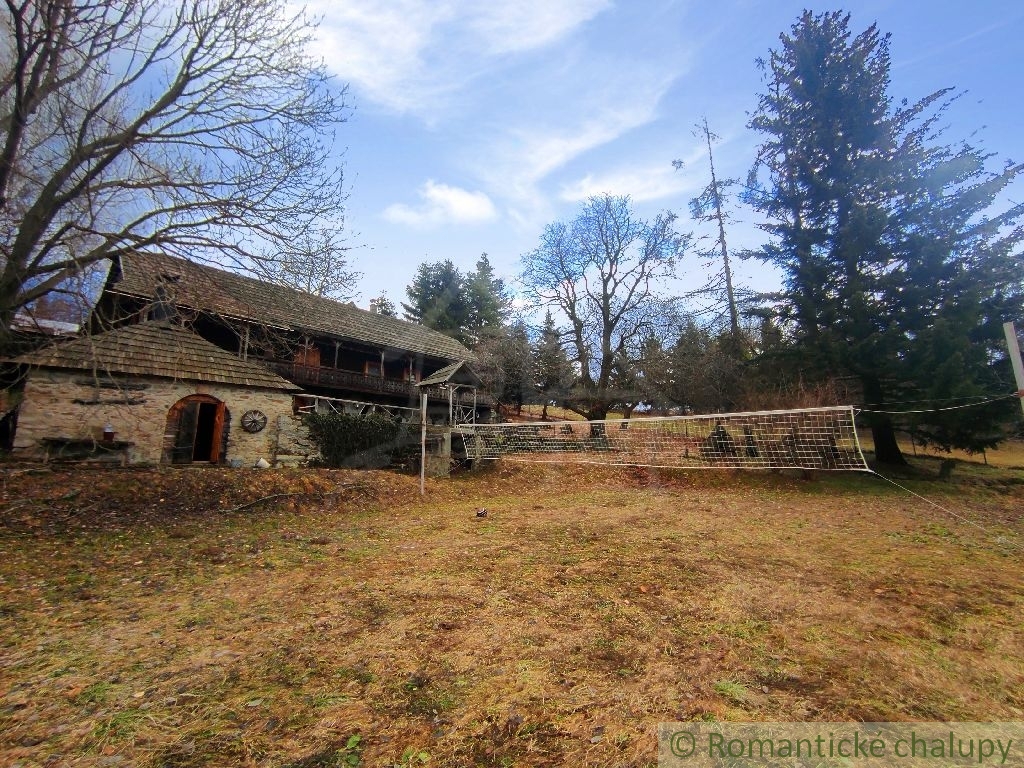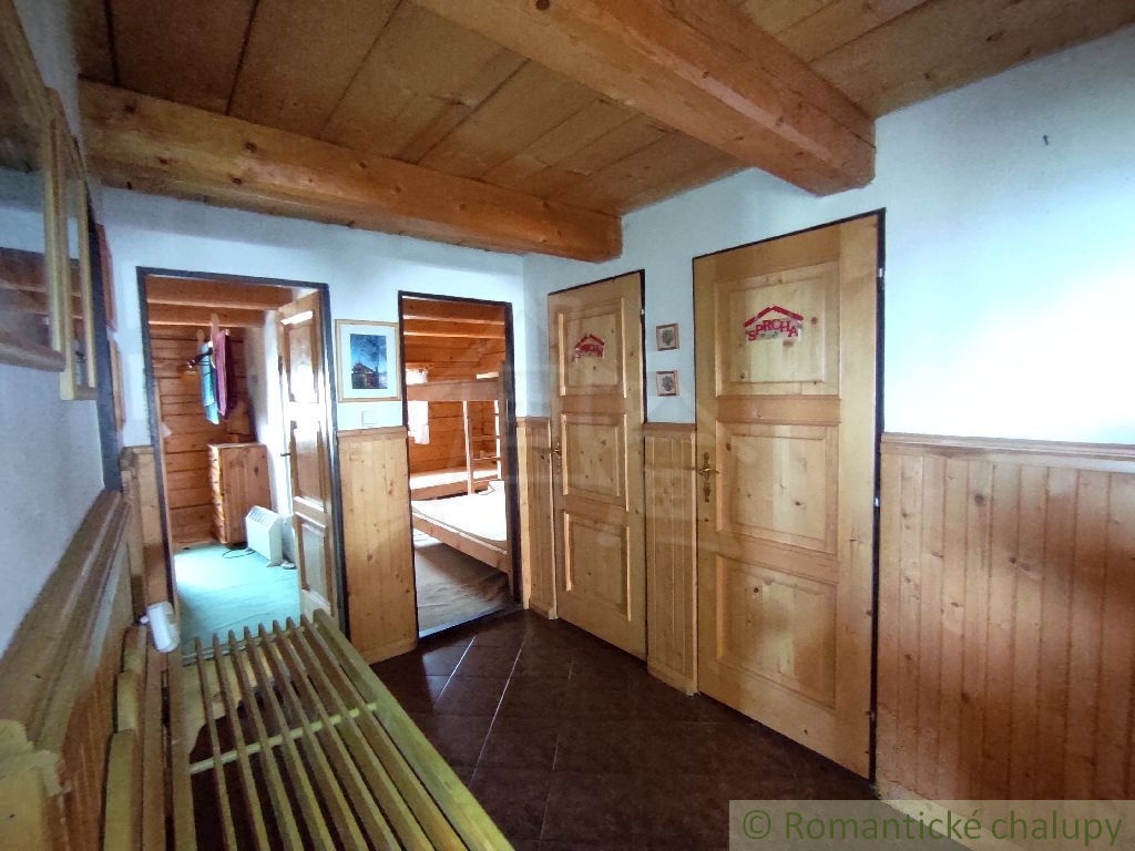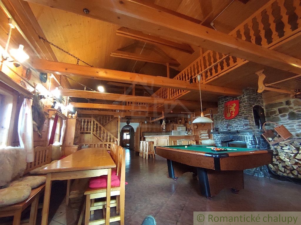 Ponúkame na predaj zaujímavú nehnuteľnosť v krásnom prostredí lazov s panoramatickým výhľadom priamo z gánku. K nehnuteľnosti vedie spevnená komunikácia. Leží na pozemku o celkovej výmere 2117 m2. Jedná sa o drevenú stavbu s kamennými základmi, pristavenú k pôvodnému kamennému domčeku. Ten je tvorený vstupnou chodbou a 2 miestnosťami. Chalupa prešla kompletnou rekonštrukciou. Má zavedenú elektrinu, vodu z vlastných (2) studní, odpady sú vyvedené trativodom . Chalupa je podpivničená. Vykurovanie je zabezpečené kozubom s prieduchmi do miestnosti v kombinácií s elektrickými radiátormi. V suteréne je krásna vínna pivnica s masívnym dreveným sedením a barovým pultom. Je tu aj pripravený priestor na saunu. Prízemie je tvorené chodbou, priestrannou spoločenskou miestnosťou s kozubom, biliardovým stolom. Na poschodí sa nachádzajú tri izby, WC a obývačkový kút. V každej obytnej izbe sú kvalitné postele z masívneho dreva, takisto podlahy, stropy, schodište aj galéria majú krásne detailné prepracovanie. Priestranný dvor disponuje ihriskom, štýlovým prestrešeným murovaným altánkom, s ohniskom a posedením, ďalej je na pozemku dreváreň so skladom a samostatne stojaca garáž. Pozemok okolo chalupy je oplotený. Z pozemku sú nádherné výhľady do okolitej prírody. Veľkým benefitom je súkromie a pokoj . Toto miesto si zamilujete. Chalupa sa predáva aj so zariadením, ponúka nadštandardný komfort a vďaka svojej polohe a veľkorysému priestoru môže byť využitá aj na komerčné účely. Video z vtáčej perspektívy : https://youtu.be/HqVS_KEerbU