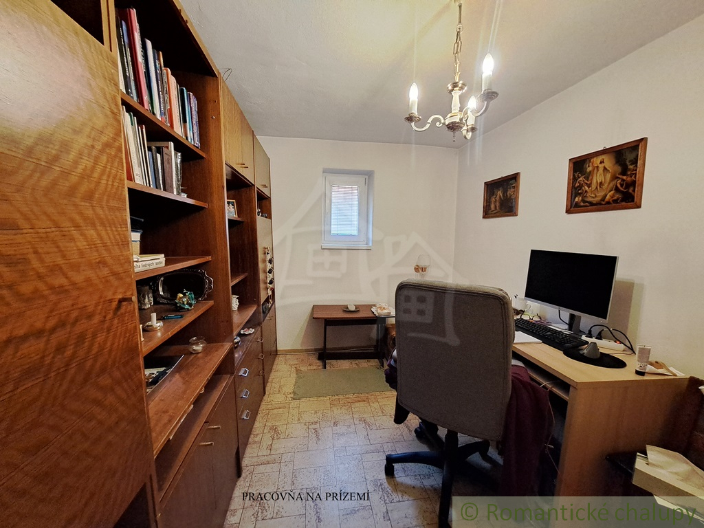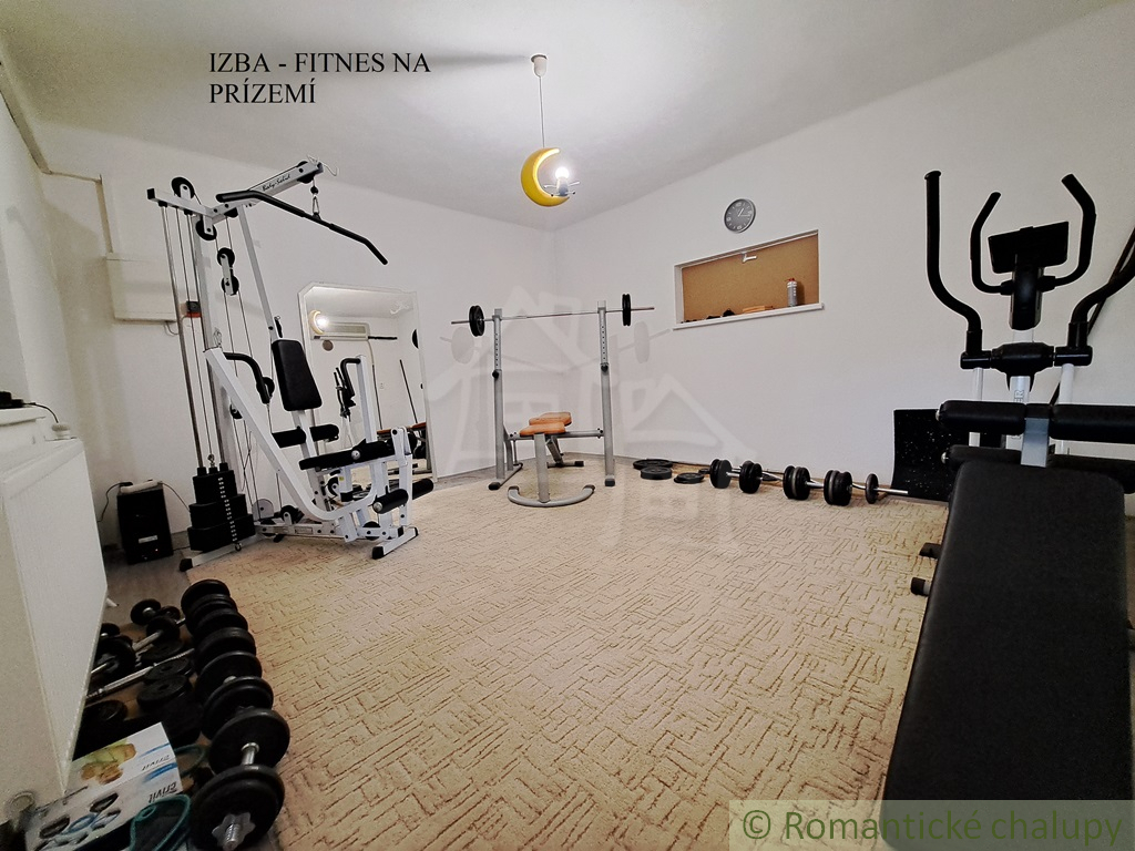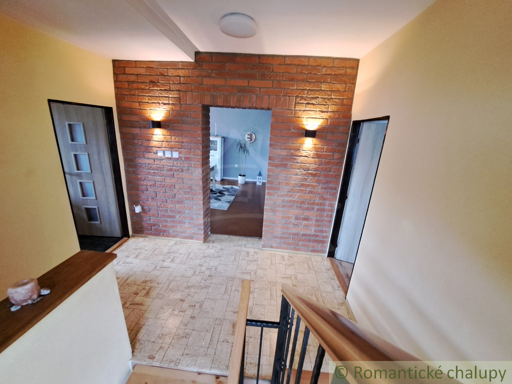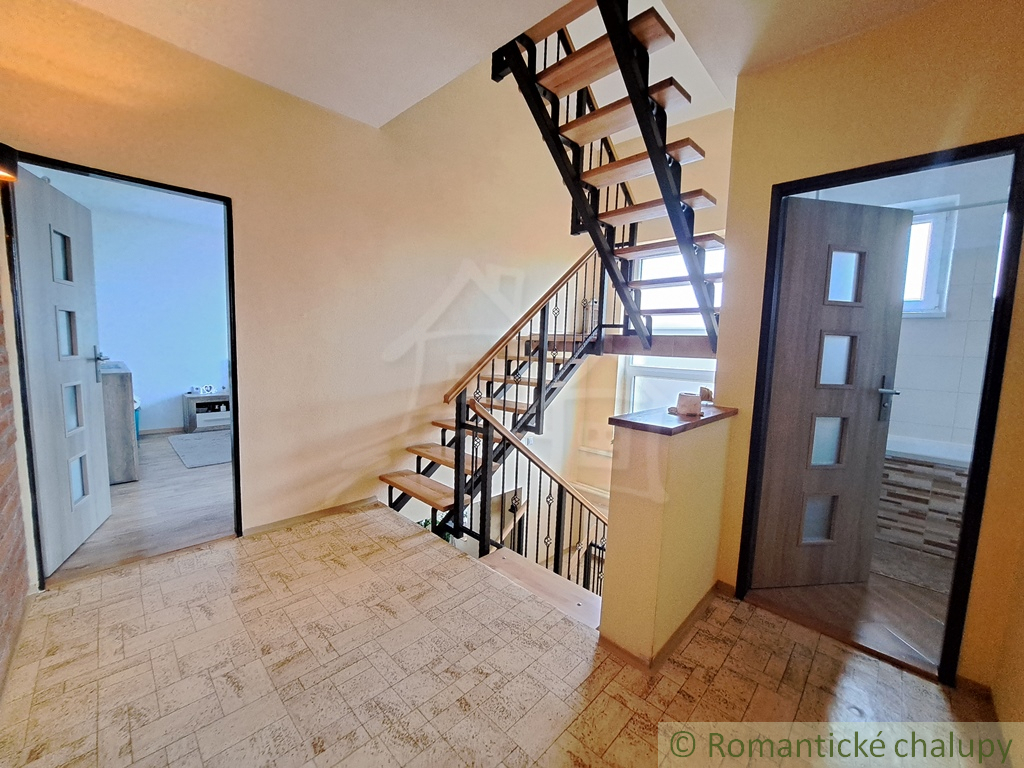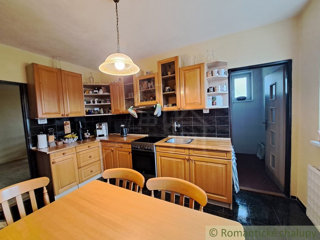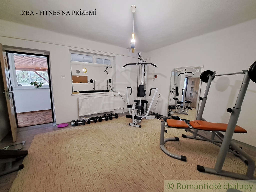 Rodinný dom disponuje prízemím a dvoma podlažiami. Prízemie pozostáva z hlavnej priestrannej vstupnej haly, pracovne, práčovne s toaletou, veľkej garáže s elektrickou bránou a kotolne. Zo vstupnej haly sa dostanete do časti menšieho vidieckeho domčeka, ktorý disponuje dlhou chodbou s vlastným vchodom, izbou ktorá slúži ako domáce fitness a kuchyňou. Počas letného obdobia môže slúžiť ako letná kuchyňa. Prvé podlažie ponúka veľkú obývačku s balkónom, kuchyňu so špajzou, spálňu a kúpeľňu s toaletou. Ďalšie dve izby sa nachádzajú na druhom podlaží. Veľkou výhodou sú podkrovné priestory, ktoré slúžia ako úložisko. Okná na podkrovných izbách sú vybavené žalúziami na elektrické ovládanie. Interiér domu pôsobí veľmi príjemne a ponúka okamžité bývanie s možnosťou neskoršej modernizácie linolea v dome na podlahovú krytinu alebo dlažbu. V kuchyni, v špajzi a kúpeľni je uložená dlažba.